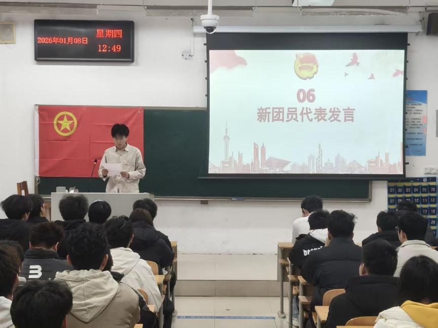 新团员代表姚霁航在发言中表示,加入共青团既是一份荣耀,也是一份沉甸甸的责任。大家要以身作则、积极进取,努力成为合格的社会主义建设者和接班人。他真挚有力的发言,感染着在场的每一位新团员。