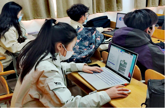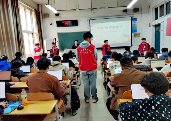 活动现场,志愿者身穿红色志愿者马夹协助安排比赛的规划布置,维护赛场秩序。参赛选手自带电脑,有秩序地进入比赛场地,进行赛前电脑的调试。比赛正式开始后,参赛选手迅速进入比赛状态,积极操作。半个小时后,陆续有同学比赛操作完毕,举手示意提交离场。最后,比赛时间结束,志愿者们协助作品的收集,然后对比赛作品进行了公开评比。
