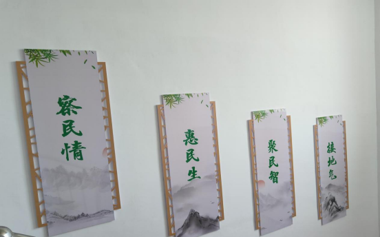 据陈保超介绍,白云山村共4个村民小组,315户1100人,耕地1700亩。2018年,在县委组织部的大力支持下,新修建的标准化村室落成,建筑面积500平方米,包括党群服务中心、党员活动室、会议室、矛盾调解室、图书室、卫生室、四点半课堂等功能单元,硬件设施配套齐全,可满足群众多样化需求。村两委班子健全,班子成员中有1名35岁以下的年轻干部和一名妇女成员,储备后备力量3人。严格开展组织生活,定期规范“三会一课”、民主评议党员、主题党日等党内组织生活,按时完成发展党员指导计划,2021年5月荣获市级优秀共产党员奖章。落实“一编三定”无职党员积分管理、合理定岗定责,科学设定积分事项、得分标准。在大家的共同努力下白云山村荣获市级文明村镇称号,争创了“基层党建”、“巩固脱贫攻坚成果”和“美丽村庄”三面红旗。同时,陈保超本人也收获了“四星支部书记”的荣誉。白云山村产业兴旺、生态宜居、乡风文明、治理有效、生活富裕,于2023年2月成功获批2022年度“五星”党支部。观察团在白云山村党群服务中心党员活动室认真观看了“白云山村”宣传片和“创建五星党支部 支部书记在行动”两个视频,然后认真聆听了陈保超关于白云山村发展历史的介绍、白云山村党建工作的发展等,对白云山村一村一品、一宅变四园、平安法治建设、乡贤文化和养老服务等有了初步的了解。随后同学们留意党群服务中心的文化宣传墙,感慨白云山村党建工作的细致。