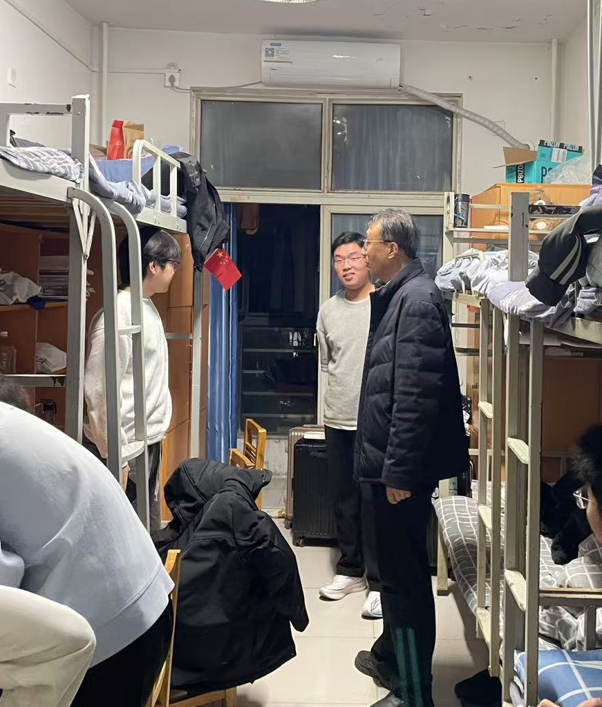 12月25日晚上,吉武俊深入员工宿舍,逐一查看宿舍环境,细致入微地了解员工的生活点滴。每到一处,他都与员工们亲切交流,关心他们能否适应集体生活,耐心询问是否遇到棘手难题。“大家生活上都还习惯吗?要是有难处,一定要跟公司讲。”一句句贴心的问候,瞬间拉近了师生距离。同时,他反复叮嘱员工们务必将宿舍安全牢记心间,倡导同学们培养良好生活习惯,早睡早起、整理内务,携手打造积极向上的宿舍文化氛围。