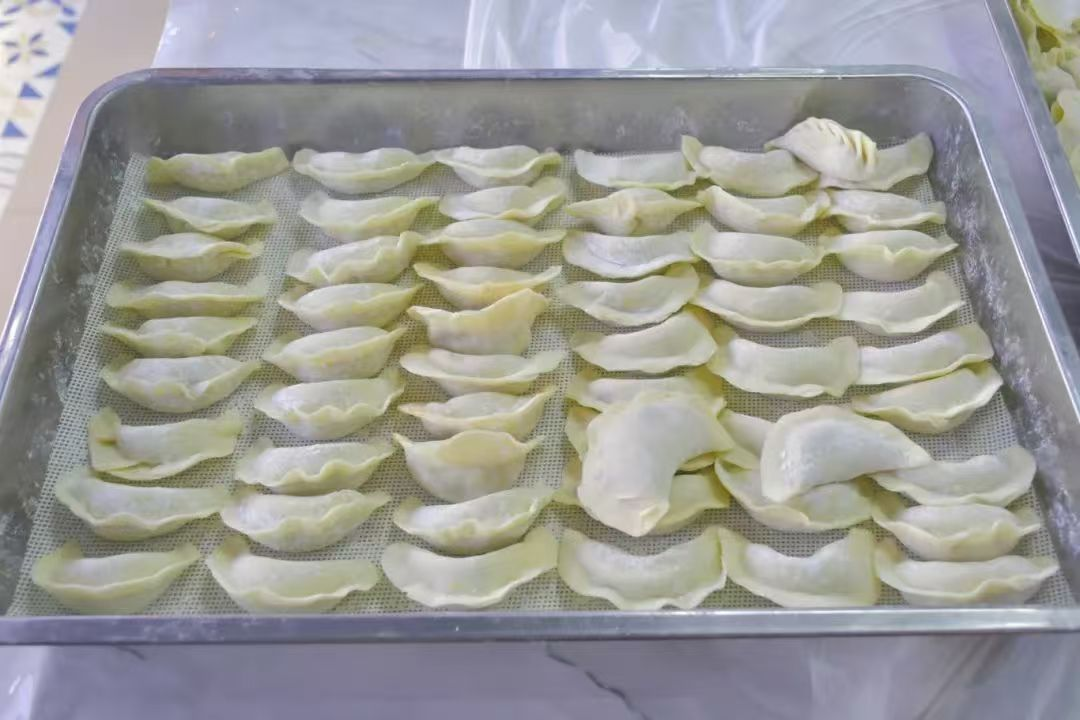 活动现场,在房静和夏连峰的带领下,师生们热情高涨,纷纷挽袖洗手、筹备食材,全情投入包饺子中。现场创意爆棚,只见师生们指尖飞舞,一个个饱含心意的饺子陆续诞生:经典传统的月牙饺,弯弯如弦月,承载着岁月的韵味;寓意团圆的元宝饺,鼓鼓似财宝,满含对美好生活的祈愿;俏皮灵动的柳叶饺,窄窄像柳叶,尽显巧思妙想,引得旁人啧啧称奇。