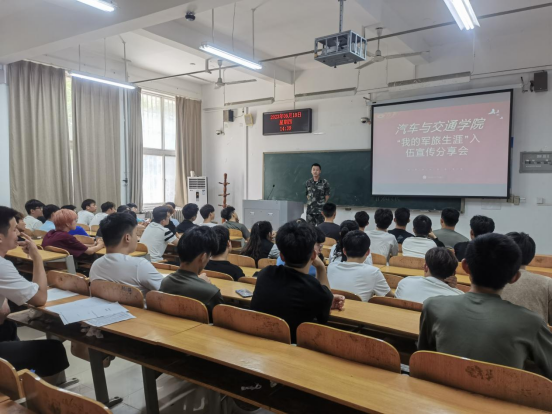 本次宣传活动由来自武警广西总队梧州支队的车身221班王元丰和武警云南省总队机动第一支队的汽修223班李世博现场讲解。他们从老员工入伍的意义、优惠政策、入伍的条件、网上报名的流程和入伍前的体检等几个方面进行讲解,详细介绍了老员工应征入伍可享受的资助、就业创业等政策,激发公司员工参军报国、逐梦军营的热情。同时,两名毕业入伍发展比较好的学长还给了大家语音寄语,分享他们的军旅故事,鼓励更多的同学积极参军。